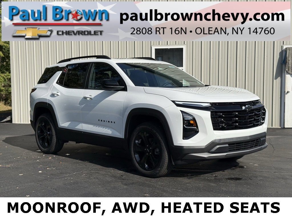 Our For The People Pricing means ZERO price increases at Paul Brown! 2026 Chevrolet Equinox LT 4D Sport Utility Summit White 1.5L DOHC 8-Speed Automatic AWD AutoSense Hands-Free Power Programmable Liftgate, Cabin Humidity & Windshield Sensor, Driver 6-Way Manual Seat Adjuster, Driver 8-Way Power Seat Adjuster, Dual-Zone Automatic Climate Control, Emergency communication system: OnStar and Chevrolet connected services capable, Evotex Seat Trim, Fully automatic headlights, Heated door mirrors, Heated front seats, Heated steering wheel, Heated Wiper Park, Low tire pressure warning, Power door mirrors, Power Dual Glass Panoramic Sliding Sunroof, Premium audio system: Chevrolet Infotainment 3, Rear window defroster, Remote keyless entry, Roof Rails, SiriusXM w/360L Trial Subscription, Wheels: 19 Black Painted Aluminum, Wireless Phone Charging for Portable Devices. 24/29 City/Highway MPG Final Price may require vehicle trade in and Paul Brown trade assistance , see website for details. For a hassle free purchase experience, reach out to the Sales team at Paul Brown Chevy at (716) 244-6077. Conveniently located on Route 16 North, Olean NY 14760. We are worth the trip! Travel from over 75 miles away and don't purchase we will supply you with $25 gas card! Paul Brown Chevy, A Dealer For the People!
