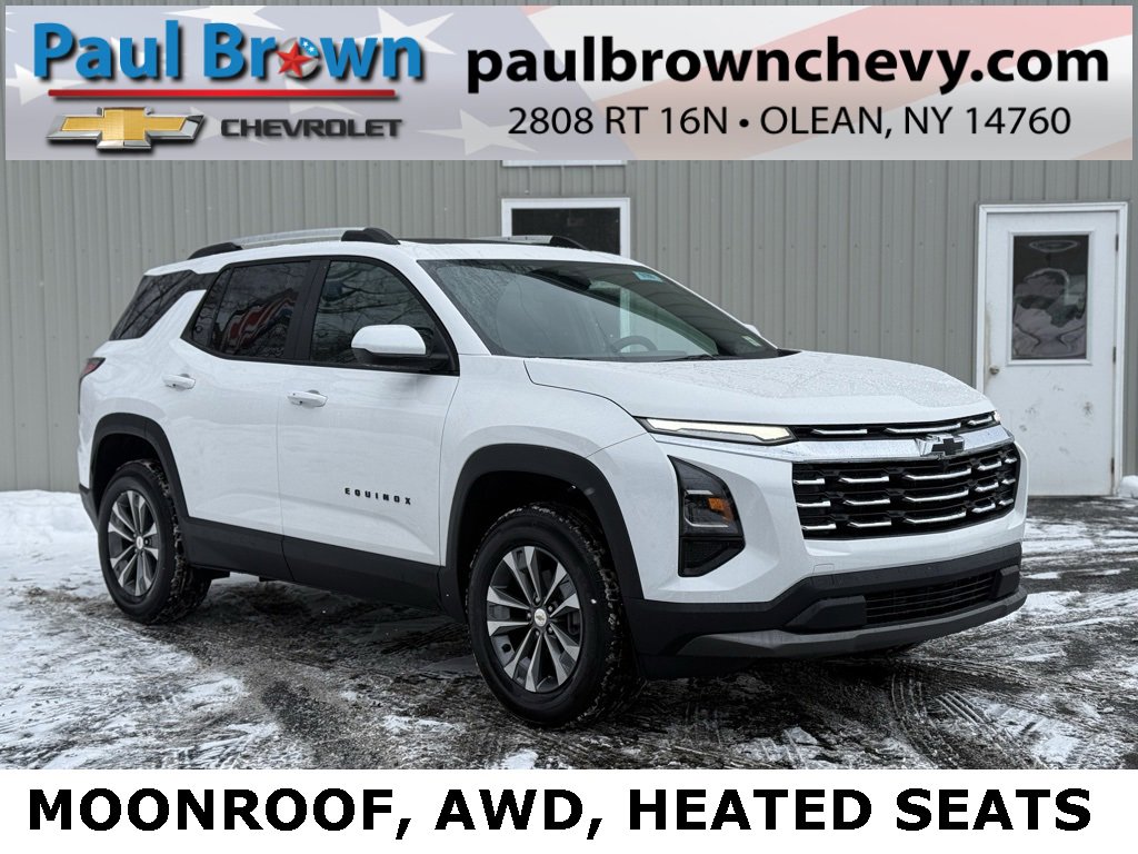 Our For The People Pricing means ZERO price increases at Paul Brown! 2026 Chevrolet Equinox LT 4D Sport Utility Summit White 1.5L DOHC 8-Speed Automatic AWD Air Conditioning, Emergency communication system: OnStar and Chevrolet connected services capable, Fully automatic headlights, Heated door mirrors, Heated front seats, Heated steering wheel, Low tire pressure warning, Power door mirrors, Power Dual Glass Panoramic Sliding Sunroof, Premium audio system: Chevrolet Infotainment 3, Rear window defroster, Roof Rails, SiriusXM with 360L Trial Subscription, Wheels: 17 Grazen Metallic Machined-Face Aluminum. 25/29 City/Highway MPG Final Price may require vehicle trade in and Paul Brown trade assistance , see website for details. For a hassle free purchase experience, reach out to the Sales team at Paul Brown Chevy at (716) 244-6077. Conveniently located on Route 16 North, Olean NY 14760. We are worth the trip! Travel from over 75 miles away and don't purchase we will supply you with $25 gas card! Paul Brown Chevy, A Dealer For the People!