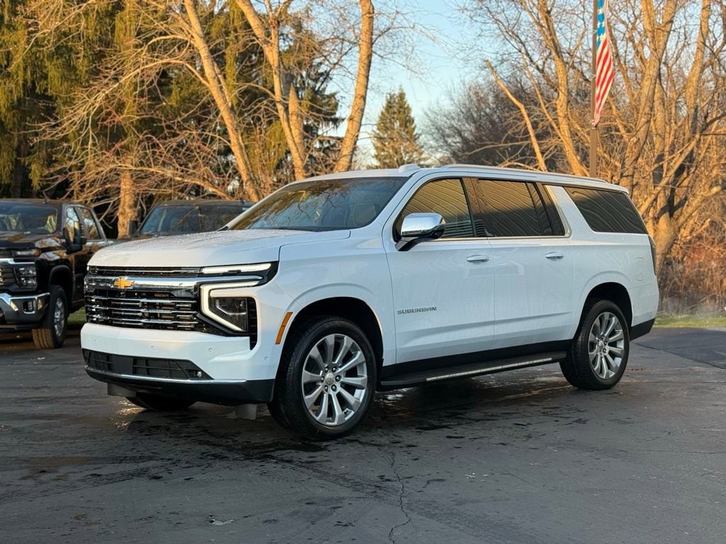 Our For The People Pricing means ZERO price increases at Paul Brown! $6,903 off MSRP! 2026 Chevrolet Suburban Premier 4D Sport Utility Polar White Tricoat EcoTec3 5.3L V8 10-Speed Automatic with Overdrive 4WD 10 Speakers, 20 x 9 Polished Aluminum Wheels, 4-Way Power Driver Lumbar Seat Adjuster, 8-Way Power Driver Seat Adjuster, 8-Way Power Front Passenger Seat Adjuster, Apple CarPlay/Android Auto, Auto-leveling suspension, Dual Exhaust System, Dual-Pane Power Panoramic Sunroof, Emergency communication system: OnStar Services capable, Front dual zone A/C, Fully automatic headlights, Garage door transmitter, Heated Power-Adjustable Outside Mirrors, Heated rear seats, Heated Steering Wheel, Low tire pressure warning, Magnetic Ride Control Suspension, Memory seat, Navigation system: Google built-in compatibility (select service plan required, terms and limitations apply), Perforated Leather Seating Surfaces, Power Release 2nd Row Bucket Seats, Power-Sliding Center Floor Console, Rain sensing wipers, Rear air conditioning, Rear Power Liftgate, Rear window defroster, Remote keyless entry, Steering wheel memory, Universal Home Remote, Wireless Phone Charging. Final Price may require vehicle trade in and Paul Brown trade assistance , see website for details. For a hassle free purchase experience, reach out to the Sales team at Paul Brown Chevy at (716) 244-6077. Conveniently located on Route 16 North, Olean NY 14760. We are worth the trip! Travel from over 75 miles away and don't purchase we will supply you with $25 gas card! Paul Brown Chevy, A Dealer For the People!
