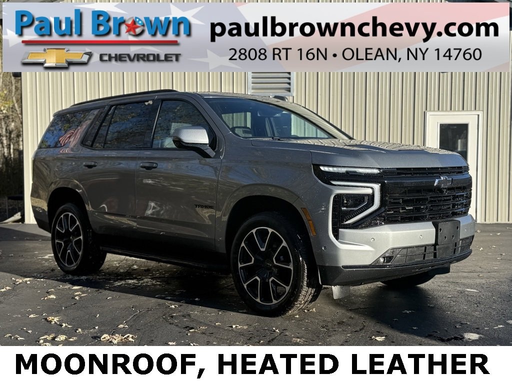 Our For The People Pricing means ZERO price increases at Paul Brown! 2026 Chevrolet Tahoe RST 4D Sport Utility Sterling Gray Metallic EcoTec3 5.3L V8 10-Speed Automatic with Overdrive 4WD 2-Way Power Driver Lumbar Seat Adjuster, 2-Way Power Front Passenger Lumbar Seat Adjuster, 2nd Row Pwr Release 60/40 Split-Folding Bench Seat, 3rd Row 60/40 Power-Folding Split-Bench Seat, 3rd Row All-Weather Floor Liners (LPO), 8-Way Power Driver Seat Adjuster, 8-Way Power Front Passenger Seat Adjuster, Apple CarPlay/Android Auto, Bose 10-Speaker Centerpoint Surround Audio Sys Ft, Comfort Package, Dual-Pane Power Panoramic Sunroof, Emergency communication system: OnStar and Chevrolet connected services capable, Exterior Parking Camera Rear, Front dual zone A/C, Heated 2nd Row Outboard Seats, Heated front seats, Heated Steering Wheel, LED Headlamps w/LED Daytime Running Lamps, LED Tail Lamps, Low tire pressure warning, Memory Settings, Navigation system: Google built-in compatibility (select service plan required, terms and limitations apply), Outside Heated Power-Adjustable Mirrors, Perforated Leather Seat Trim, Rear air conditioning, Rear Power Liftgate, Rear window defroster, Set of 4 Wheel Locks (LPO), Universal Home Remote, Wheels: 22 x 9 Bright Machined. Final Price may require vehicle trade in and Paul Brown trade assistance , see website for details. For a hassle free purchase experience, reach out to the Sales team at Paul Brown Chevy at (716) 244-6077. Conveniently located on Route 16 North, Olean NY 14760. We are worth the trip! Travel from over 75 miles away and don't purchase we will supply you with $25 gas card! Paul Brown Chevy, A Dealer For the People!