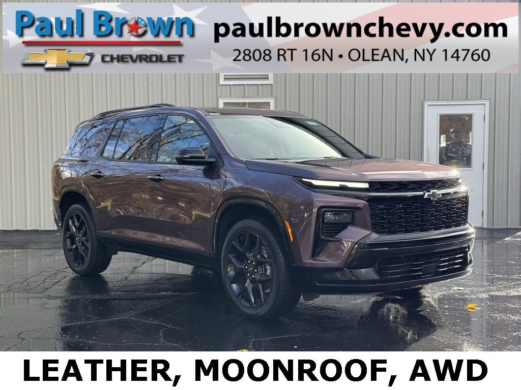 Our For The People Pricing means ZERO price increases at Paul Brown! 2026 Chevrolet Traverse RS 4D Sport Utility Stardust Metallic 2.5L DOHC 8-Speed Automatic AWD 6-Way Power Front Passenger Seat Adjuster, 8-Way Power Driver Seat Adjuster, Apple CarPlay/Android Auto, Auto tilt-away steering wheel, Driver 4-Way Power Lumbar Seat Adjuster, Emergency communication system: OnStar, Exterior Parking Camera Rear, Front dual zone A/C, Heated door mirrors, Heated front seats, Heated rear seats, Heated steering wheel, Low tire pressure warning, Navigation System, Perforated Leather-Appointed Seat Trim, Power door mirrors, Power Liftgate, Rain sensing wipers, Rear air conditioning, Rear window defroster, Remote keyless entry, SiriusXM w/360L Trial Subscription, Ventilated front seats, Wheels: 22 High Gloss Black Painted Aluminum. Final Price may require vehicle trade in and Paul Brown trade assistance , see website for details. For a hassle free purchase experience, reach out to the Sales team at Paul Brown Chevy at (716) 244-6077. Conveniently located on Route 16 North, Olean NY 14760. We are worth the trip! Travel from over 75 miles away and don't purchase we will supply you with $25 gas card! Paul Brown Chevy, A Dealer For the People!