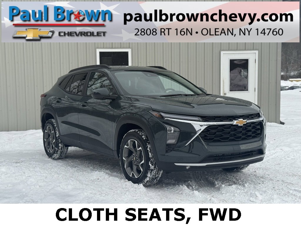 Our For The People Pricing means ZERO price increases at Paul Brown! 2026 Chevrolet Trax LT 4D Sport Utility Cypress Gray ECOTEC 1.2L Turbo 6-Speed Automatic FWD **$299 Per month 36 month 30,000 total mile lease plan. $1,500 plus tax and First payment Due at signing. Lease Loyalty or Lease Conquest Rebate qualification needed, Air Conditioning, Automatic temperature control, Cloth/Evotex Seat Trim, Emergency communication system: OnStar One Essentials, Exterior Parking Camera Rear, Fully automatic headlights, Low tire pressure warning, Power door mirrors, Rear window defroster, Remote keyless entry, SiriusXM Trial Subscription, Wheels: 17 Inch Gray-Painted Machined Aluminum Alloy, Wireless Apple CarPlay/Wireless Android Auto. 28/32 City/Highway MPG Final Price may require vehicle trade in and Paul Brown trade assistance , see website for details. For a hassle free purchase experience, reach out to the Sales team at Paul Brown Chevy at (716) 244-6077. Conveniently located on Route 16 North, Olean NY 14760. We are worth the trip! Travel from over 75 miles away and don't purchase we will supply you with $25 gas card! Paul Brown Chevy, A Dealer For the People!