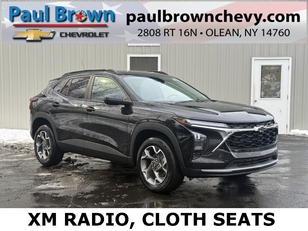 Our For The People Pricing means ZERO price increases at Paul Brown! $1,000 off MSRP! 2026 Chevrolet Trax LT 4D Sport Utility Mosaic Black Metallic ECOTEC 1.2L Turbo 6-Speed Automatic FWD Air Conditioning, Automatic temperature control, Cloth/Evotex Seat Trim, Emergency communication system: OnStar One Essentials, Fully automatic headlights, Low tire pressure warning, Power door mirrors, Premium audio system: Chevrolet Infotainment 3, Rear window defroster, SiriusXM Trial Subscription, Wheels: 17 Inch Gray-Painted Machined Aluminum Alloy, Wireless Apple CarPlay/Wireless Android Auto. 28/32 City/Highway MPG Final Price may require vehicle trade in and Paul Brown trade assistance , see website for details. For a hassle free purchase experience, reach out to the Sales team at Paul Brown Chevy at (716) 244-6077. Conveniently located on Route 16 North, Olean NY 14760. We are worth the trip! Travel from over 75 miles away and don't purchase we will supply you with $25 gas card! Paul Brown Chevy, A Dealer For the People!