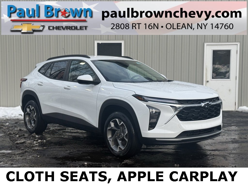 Our For The People Pricing means ZERO price increases at Paul Brown! $1,000 off MSRP! 2026 Chevrolet Trax LT 4D Sport Utility Summit White ECOTEC 1.2L Turbo 6-Speed Automatic FWD Air Conditioning, Automatic temperature control, Cloth/Evotex Seat Trim, Emergency communication system: OnStar One Essentials, Fully automatic headlights, Low tire pressure warning, Power door mirrors, Rear window defroster, SiriusXM Trial Subscription, Wheels: 17 Inch Gray-Painted Machined Aluminum Alloy, Wireless Apple CarPlay/Wireless Android Auto. 28/32 City/Highway MPG Final Price may require vehicle trade in and Paul Brown trade assistance , see website for details. For a hassle free purchase experience, reach out to the Sales team at Paul Brown Chevy at (716) 244-6077. Conveniently located on Route 16 North, Olean NY 14760. We are worth the trip! Travel from over 75 miles away and don't purchase we will supply you with $25 gas card! Paul Brown Chevy, A Dealer For the People!