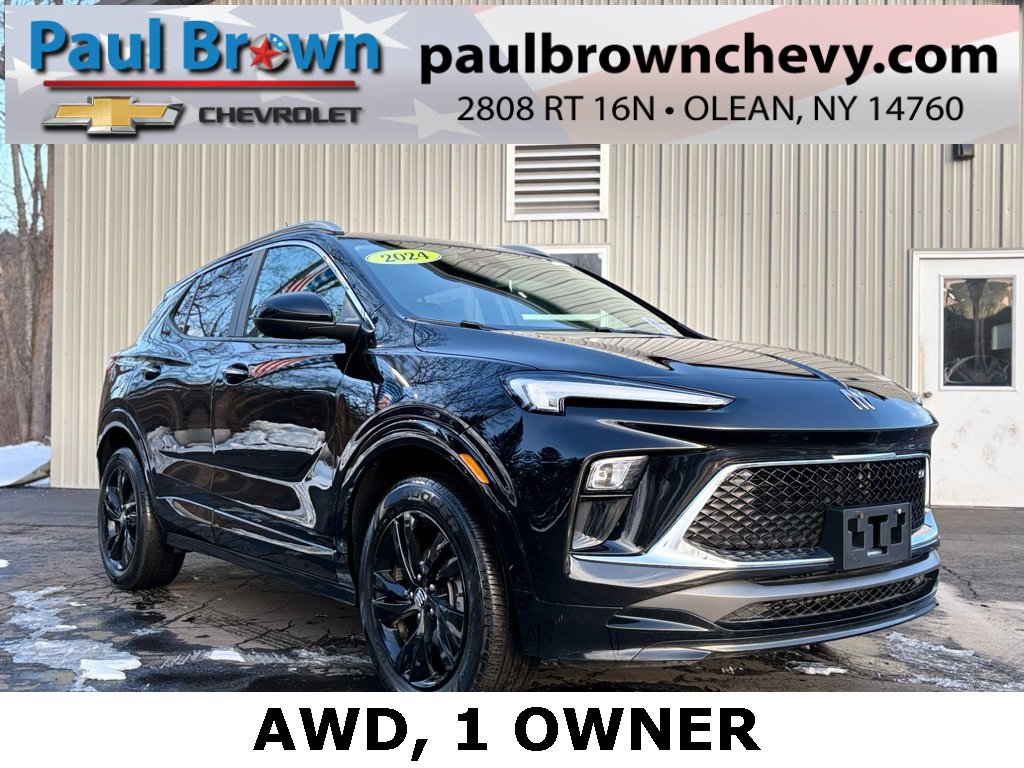 CARFAX One-Owner. 2024 Buick Encore GX Sport Touring 4D Sport Utility Ebony Twilight Metallic ECOTEC 1.3L Turbo 9-Speed Automatic AWD Air Conditioning, Automatic temperature control, Emergency communication system: OnStar and Buick connected services capable, Fully automatic headlights, Heated door mirrors, Leatherette Seat Trim, Low tire pressure warning, Power door mirrors, Rear window defroster, SiriusXM, Wheels: 18 Gloss Black Aluminum, Wireless Apple CarPlay/Wireless Android Auto. 26/28 City/Highway MPG Final Price may require vehicle trade in and Paul Brown trade assistance , see website for details. For a hassle free purchase experience, reach out to the Sales team at Paul Brown Chevy at (716) 244-6077. Conveniently located on Route 16 North, Olean NY 14760. We are worth the trip! Travel from over 75 miles away and don't purchase we will supply you with $25 gas card! Paul Brown Chevy, A Dealer For the People!