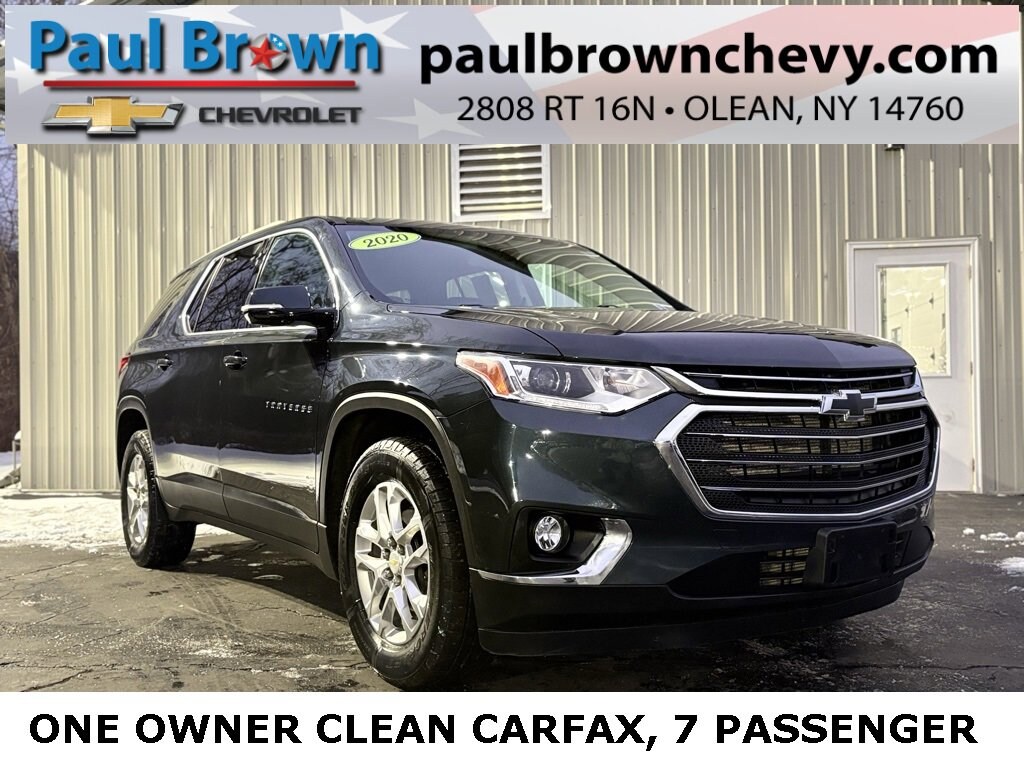 Priced below KBB Fair Purchase Price! CARFAX One-Owner. Clean CARFAX. 2020 Chevrolet Traverse LT 1LT 4D Sport Utility Graphite Metallic 3.6L V6 SIDI VVT 9-Speed Automatic AWD Odometer is 12945 miles below market average! Apple CarPlay/Android Auto, Automatic Emergency Braking, Automatic Heated Steering Wheel, Driver Confidence II Package, Emergency communication system: OnStar and Chevrolet connected services capable, Following Distance Indicator, Forward Collision Alert, Front dual zone A/C, Front Pedestrian Braking, Heated door mirrors, Heated front seats, Hitch Guidance w/Hitch View, IntelliBeam Auto High Beam Control Headlamps, Lane Keep Assist w/Lane Departure Warning, Low tire pressure warning, Power door mirrors, Power driver seat, Power Liftgate, Premium Cloth Seat Trim, Rear air conditioning, Rear window defroster, Trailering Assist Guidelines, Wheels: 18 Bright Silver Painted Aluminum. Final Price may require vehicle trade in and Paul Brown trade assistance , see website for details. For a hassle free purchase experience, reach out to the Sales team at Paul Brown Chevy at (716) 244-6077. Conveniently located on Route 16 North, Olean NY 14760. We are worth the trip! Travel from over 75 miles away and don't purchase we will supply you with $25 gas card! Paul Brown Chevy, A Dealer For the People!