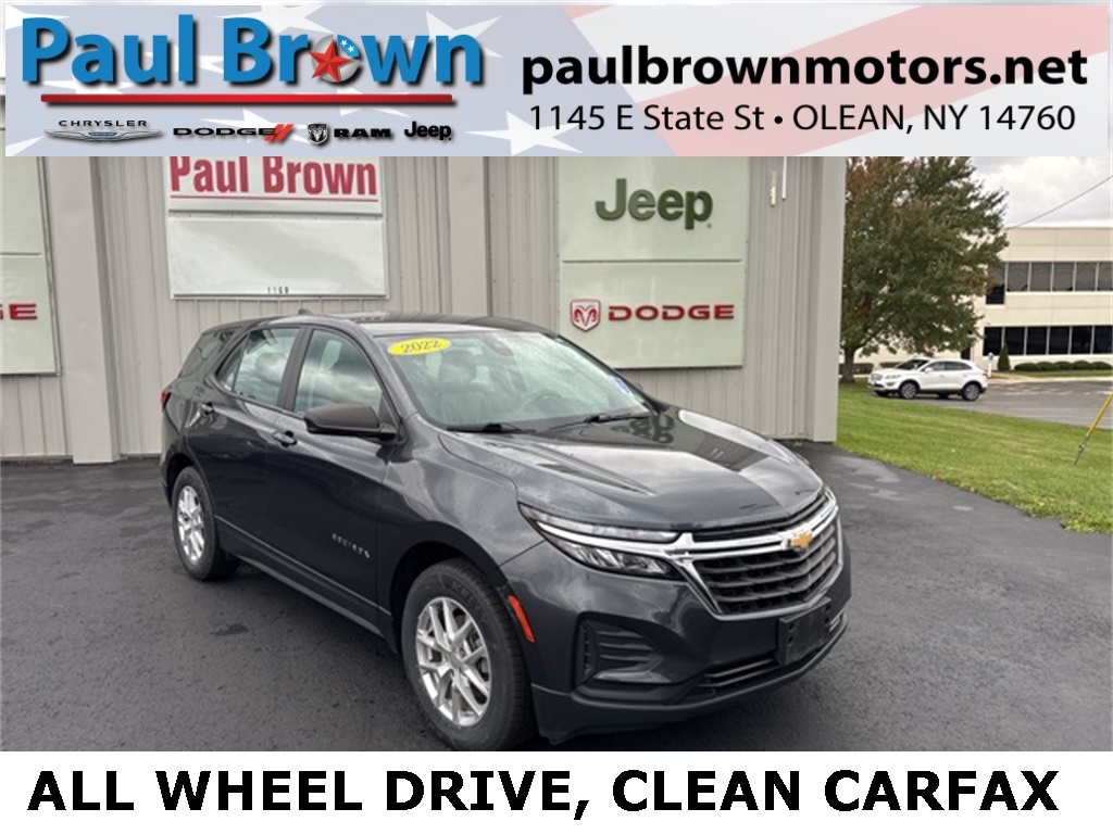 Priced below KBB Fair Purchase Price! CARFAX One-Owner. Clean CARFAX. 2022 Chevrolet Equinox LS 4D Sport Utility Iron Gray Metallic Odometer is 11679 miles below market average! 1.5L DOHC AWD 6-Speed Automatic Electronic with Overdrive 2 Rear USB Charging-Only Ports, 2 USB Ports & Auxiliary Input Jack, 6 Speaker Audio System Feature, Air Conditioning, Bluetooth® For Phone, Emergency communication system: OnStar and Chevrolet connected services capable, Fully automatic headlights, Heated door mirrors, Low tire pressure warning, Power door mirrors, Premium Cloth Seat Trim, Radio: Chevrolet Infotainment 3 System w/AM/FM, Rear window defroster, SiriusXM Radio, Wireless Apple CarPlay/Wireless Android Auto. 25/30 City/Highway MPG Final Price may require vehicle trade in and Paul Brown trade assistance , see website for details. For a hassle free purchase experience, reach out to the Sales team at Paul Brown Chevy at (716) 244-6077. Conveniently located on Route 16 North, Olean NY 14760. We are worth the trip! Travel from over 75 miles away and don't purchase we will supply you with $25 gas card! Paul Brown Chevy, A Dealer For the People! Our For The People Pricing means ZERO price increases at Paul Brown.