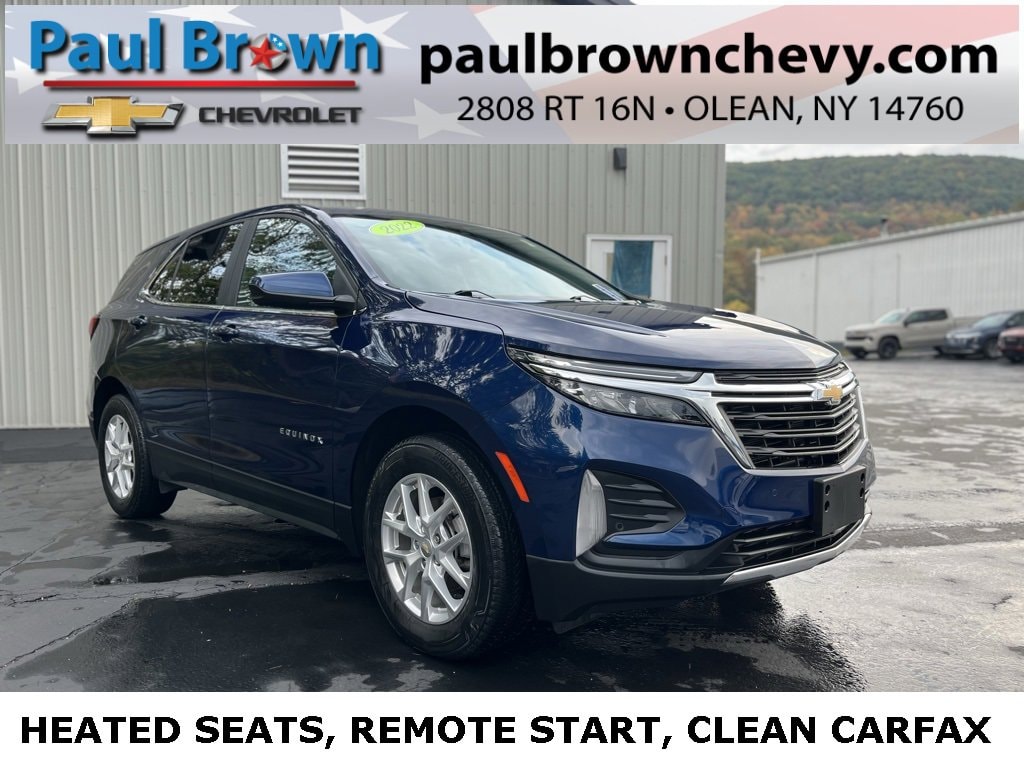 Priced below KBB Fair Purchase Price! CARFAX One-Owner. Clean CARFAX. 2022 Chevrolet Equinox LT 4D Sport Utility Blue Glow Metallic 1.5L DOHC 6-Speed Automatic Electronic with Overdrive AWD Odometer is 1784 miles below market average! 25/30 City/Highway MPG Final Price may require vehicle trade in and Paul Brown trade assistance , see website for details. For a hassle free purchase experience, reach out to the Sales team at Paul Brown Chevy at (716) 244-6077. Conveniently located on Route 16 North, Olean NY 14760. We are worth the trip! Travel from over 75 miles away and don't purchase we will supply you with $25 gas card! Paul Brown Chevy, A Dealer For the People!