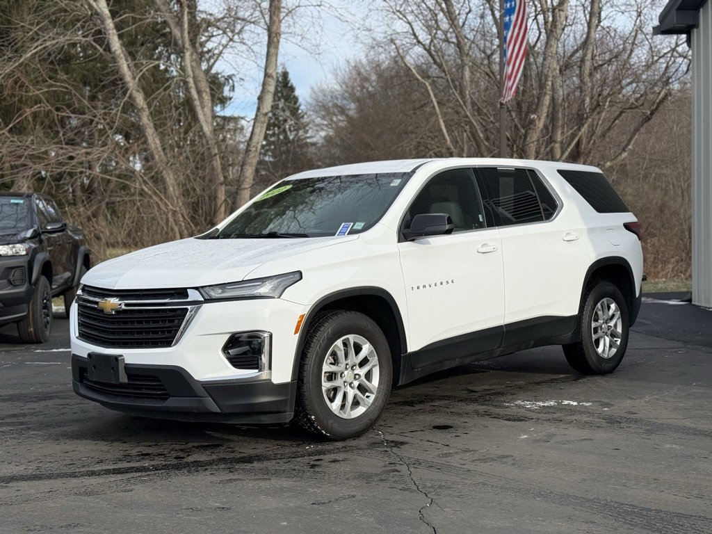 Priced below KBB Fair Purchase Price! Clean CARFAX. 2022 Chevrolet Traverse LS 4D Sport Utility Summit White 3.6L V6 SIDI VVT 9-Speed Automatic AWD Odometer is 1689 miles below market average! 6-Speaker Audio System Feature, Apple CarPlay/Android Auto, Exterior Parking Camera Rear, Front dual zone A/C, Fully automatic headlights, Heated door mirrors, Low tire pressure warning, Power door mirrors, Radio: Chevrolet Infotainment System AM/FM Stereo, Rear air conditioning, Remote keyless entry, SiriusXM Radio, Wheels: 18 Bright Silver Painted Aluminum. Final Price may require vehicle trade in and Paul Brown trade assistance , see website for details. For a hassle free purchase experience, reach out to the Sales team at Paul Brown Chevy at (716) 244-6077. Conveniently located on Route 16 North, Olean NY 14760. We are worth the trip! Travel from over 75 miles away and don't purchase we will supply you with $25 gas card! Paul Brown Chevy, A Dealer For the People!