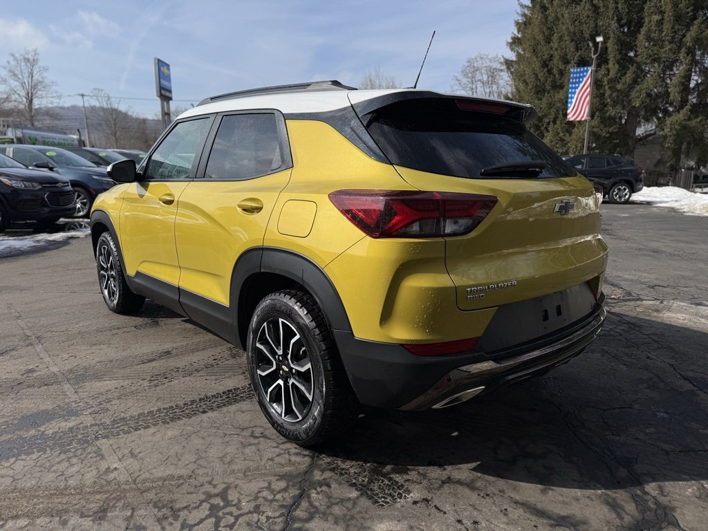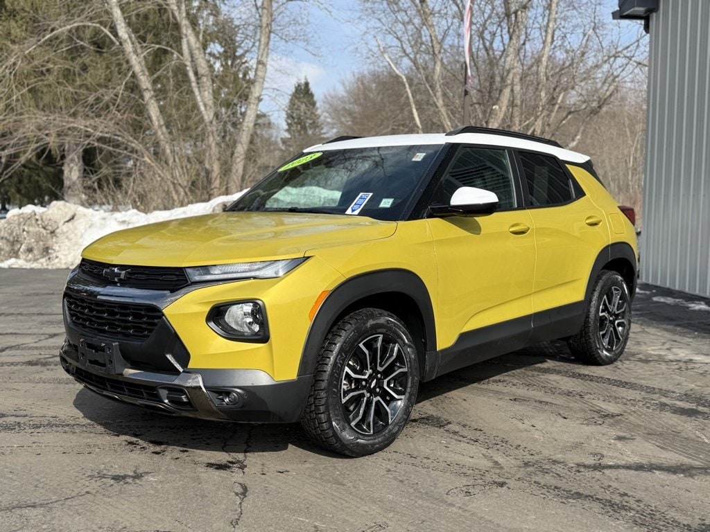 CARFAX One-Owner. Clean CARFAX. 2023 Chevrolet TrailBlazer ACTIV 4D Sport Utility Nitro Yellow Metallic 1.3L Ecotec Turbo DOHC SIDI w/VVT 9-Speed Automatic AWD 1 Type-A & 1 Type-C USB Charging-Only Ports, 120-Volt Power Outlet, 2-Way Power Driver Lumbar Seat Adjuster, 8-Way Power Driver Seat Adjuster, 8 Diagonal Color Touchscreen Display, Air Conditioning, Convenience Package, Driver & Front Passenger Illuminated Vanity Mirrors, Driver Confidence Package, Dual-Pane Panoramic Power Sunroof, Emergency communication system: OnStar and Chevrolet connected services capable, Fully automatic headlights, Hands-Free Power Programmable Liftgate, Heated door mirrors, Heated front seats, Heated steering wheel, Lane Change Alert w/Side Blind Zone Alert, Leatherette Seat Trim, Low tire pressure warning, Power door mirrors, Rear Cross Traffic Alert, Rear Park Assist, Rear window defroster, SiriusXM Radio, Summit White Two-Tone Roof, Sun & Liftgate Package, Wheels: 17 High Gloss Black Machined Aluminum, Wireless Apple CarPlay/Android Auto. 26/30 City/Highway MPG Final Price may require vehicle trade in and Paul Brown trade assistance , see website for details. For a hassle free purchase experience, reach out to the Sales team at Paul Brown Chevy at (716) 244-6077. Conveniently located on Route 16 North, Olean NY 14760. We are worth the trip! Travel from over 75 miles away and don't purchase we will supply you with $25 gas card! Paul Brown Chevy, A Dealer For the People!