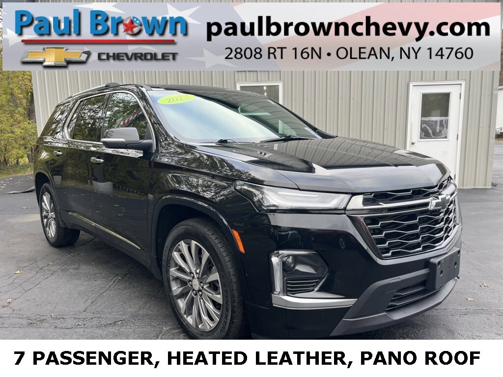 Clean CARFAX. 2023 Chevrolet Traverse Premier 4D Sport Utility Mosaic Black Metallic 3.6L V6 SIDI VVT 9-Speed Automatic AWD Final Price may require vehicle trade in and Paul Brown trade assistance , see website for details. For a hassle free purchase experience, reach out to the Sales team at Paul Brown Chevy at (716) 244-6077. Conveniently located on Route 16 North, Olean NY 14760. We are worth the trip! Travel from over 75 miles away and don't purchase we will supply you with $25 gas card! Paul Brown Chevy, A Dealer For the People!