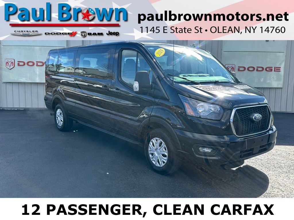 CARFAX One-Owner. Clean CARFAX. We want your trade, ask about Paul Brown Trade discount available to all customers with a trade in! 2024 Ford Transit-350 XLT Passenger Van Agate Black Metallic 3.5L V6 Flex Fuel RWD 10-Speed Automatic with Overdrive 3rd row seats: split-bench, 4th-Row Bench Seat, ABS brakes, Automatic temperature control, Cloth Front Bucket Seats, Electronic Stability Control, Emergency communication system: 911 Assist, Fully automatic headlights, Heated door mirrors, Illuminated entry, Low tire pressure warning, Navigation system: Connected Navigation, Power door mirrors, Power windows, Rain sensing wipers, Rear air conditioning, Rear window defroster, Remote keyless entry, Reverse Sensing System, Speed control, Telescoping steering wheel, Tilt steering wheel, Traction control. For a hassle free purchase experience, reach out to the Sales team at Paul Brown Motors at (585) 376-5057. Conveniently located on Route 16 North, Olean NY 14760. We are worth the trip! Travel from over 75 miles away and don't purchase we will supply you with $25 gas card! Paul Brown Motors, A Dealer For the People!