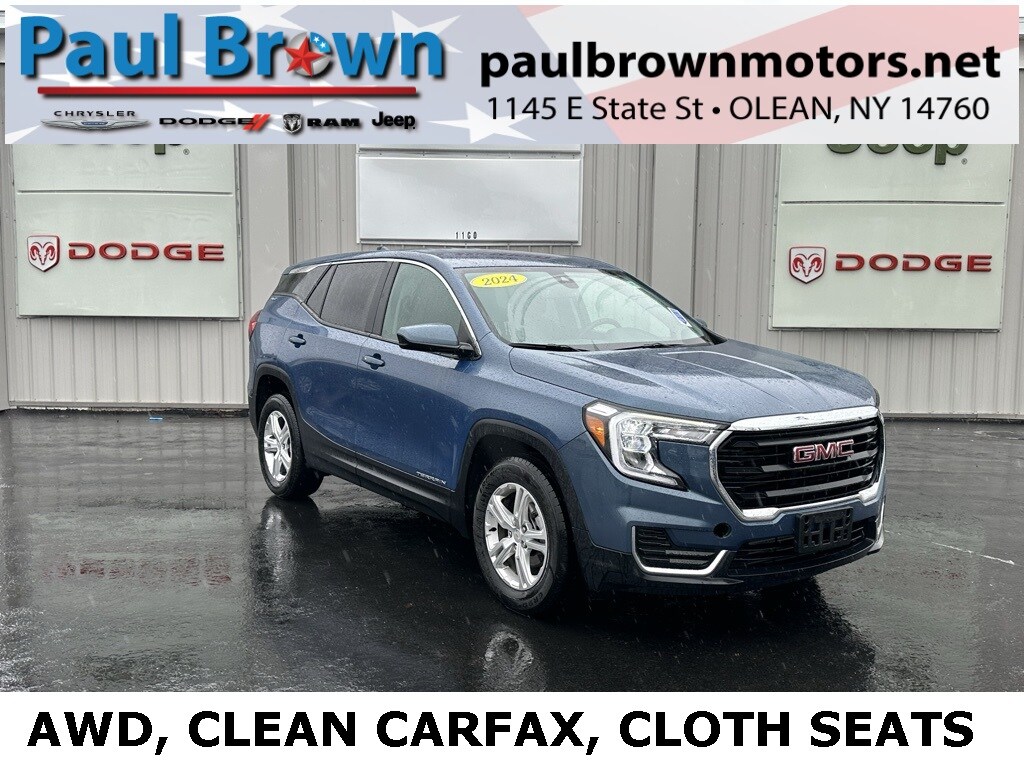 Priced below KBB Fair Purchase Price! CARFAX One-Owner. Clean CARFAX. 2024 GMC Terrain SLE 4D Sport Utility Downpour Metallic 1.5L DOHC AWD 9-Speed Automatic Balance of new car warranty., 2 USB Data Ports w/Auxiliary Input Jack, Air Conditioning, Auto High-beam Headlights, Automatic temperature control, Bluetooth® For Phone, Emergency communication system: OnStar and GMC connected services capable, Heated door mirrors, Low tire pressure warning, Power door mirrors, Power steering, Power windows, Premium Cloth Seat Trim, Rear window defroster, Remote keyless entry, SiriusXM, Speed control, Telescoping steering wheel, Tilt steering wheel, Wheels: 17" x 7" Silver Painted Aluminum, Wireless Apple CarPlay/Wireless Android Auto. 23/28 City/Highway MPG Final Price may require vehicle trade in and Paul Brown trade assistance, see website for details. For a hassle free purchase experience, reach out to the Sales team at Paul Brown Motors at (585-376-5057). Conveniently located on E State Street, Olean NY 14760. We are worth the trip! Travel from over 75 miles away and don't purchase we will supply you with $25 gas card! Paul Brown Chevy, A Dealer For the People! Our For The People Pricing means ZERO price increases at Paul Brown.