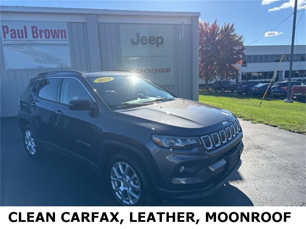 CARFAX One-Owner. Clean CARFAX. 2022 Jeep Compass Latitude Lux 4D Sport Utility Granite Crystal Metallic Clearcoat 2.4L I4 4WD 9-Speed 948TE Automatic Emergency communication system: SiriusXM Guardian, Fully automatic headlights, Heated door mirrors, Heated front seats, Heated steering wheel, Leather Trimmed Bucket Seats, Low tire pressure warning, ParkView Rear Back-Up Camera, Power door mirrors, Power driver seat, Power Front/Fixed Rear Full Sunroof, Premium Alpine Speaker System, Sun and Sound Group, Wheels: 18" x 7.0" Painted Aluminum. 22/30 City/Highway MPG Final Price may require vehicle trade in and Paul Brown trade assistance , see website for details. For a hassle free purchase experience, reach out to the Sales team at Paul Brown Chevy at (716) 244-6077. Conveniently located on Route 16 North, Olean NY 14760. We are worth the trip! Travel from over 75 miles away and don't purchase we will supply you with $25 gas card! Paul Brown Chevy, A Dealer For the People! Our For The People Pricing means ZERO price increases at Paul Brown.