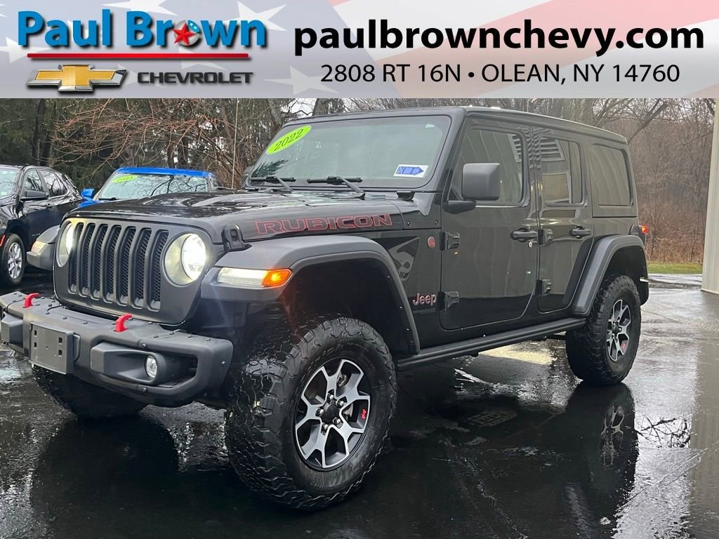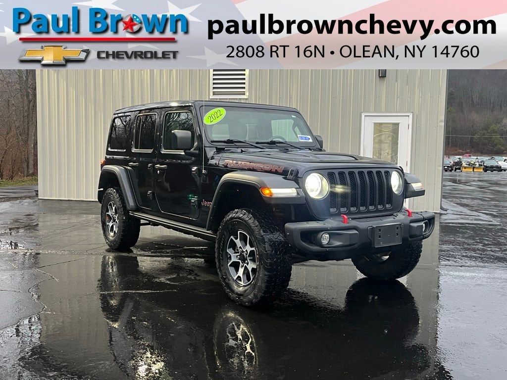 Priced below KBB Fair Purchase Price! CARFAX One-Owner. Clean CARFAX. 2022 Jeep Wrangler Unlimited Rubicon 4D Sport Utility Black Clearcoat 3.6L V6 24V VVT 8-Speed Automatic 4WD Final Price may require vehicle trade in and Paul Brown trade assistance , see website for details. For a hassle free purchase experience, reach out to the Sales team at Paul Brown Chevy at (716) 244-6077. Conveniently located on Route 16 North, Olean NY 14760. We are worth the trip! Travel from over 75 miles away and don't purchase we will supply you with $25 gas card! Paul Brown Chevy, A Dealer For the People!