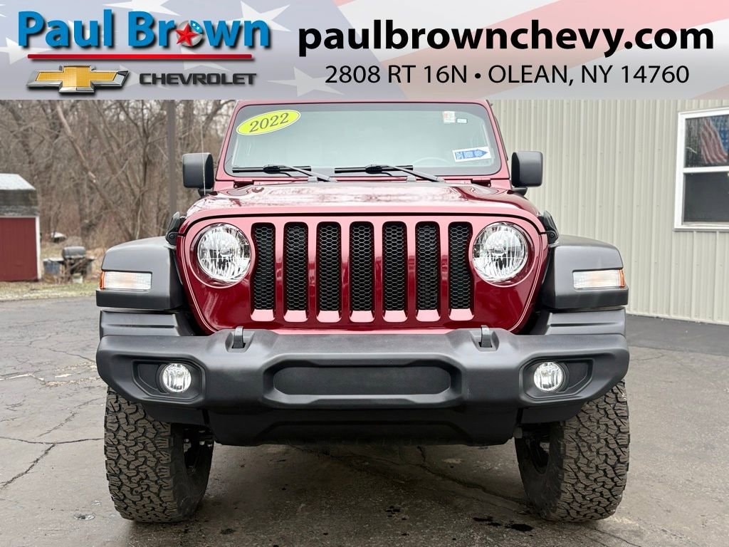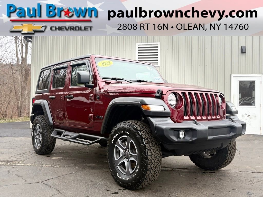 Priced below KBB Fair Purchase Price! Clean CARFAX. 2022 Jeep Wrangler Unlimited Sport S 4D Sport Utility Snazzberry Pearlcoat 3.6L V6 24V VVT 8-Speed Automatic 4WD Odometer is 25975 miles below market average! Final Price may require vehicle trade in and Paul Brown trade assistance , see website for details. For a hassle free purchase experience, reach out to the Sales team at Paul Brown Chevy at (716) 244-6077. Conveniently located on Route 16 North, Olean NY 14760. We are worth the trip! Travel from over 75 miles away and don't purchase we will supply you with $25 gas card! Paul Brown Chevy, A Dealer For the People!