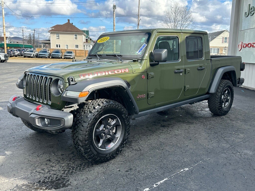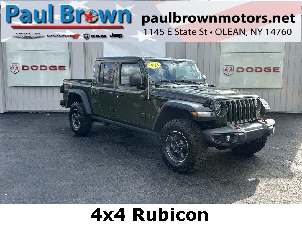 Priced below KBB Fair Purchase Price! CARFAX One-Owner. Clean CARFAX. 2023 Jeep Gladiator Rubicon 4D Crew Cab Sarge Green Clearcoat Odometer is 7522 miles below market average! 3.6L V6 24V VVT 4WD 8-Speed Automatic Balance of new car warranty., Air Conditioning, Apple CarPlay/Android Auto, Body Color 3-Piece Hard Top, Cold Weather Group, Daytime Running Lamps LED Accents, Front dual zone A/C, Front fog lights, Front LED Fog Lamps, Heated Front Seats, Heated Steering Wheel, LED Lighting Group, LED Park Turn Lamps, LED Premium Reflector Headlamps, LED Taillamps, Navigation System/GPS/Navi, No Soft Top, ParkView Rear Back-Up Camera, Power windows, Premium Cloth Low-Back Bucket Seats, Rear Sliding Window, Rear Window Defroster, Remote keyless entry, Speed control, Telescoping steering wheel, Tilt steering wheel, Wheels: 17" x 7.5" Granite Crystal Aluminum. Final Price may require vehicle trade in and Paul Brown trade assistance, see website for details. For a hassle free purchase experience, reach out to the Sales team at Paul Brown Motors at (585-376-5057). Conveniently located on E State Street, Olean NY 14760. We are worth the trip! Travel from over 75 miles away and don't purchase we will supply you with $25 gas card! Paul Brown Chevy, A Dealer For the People! Our For The People Pricing means ZERO price increases at Paul Brown.