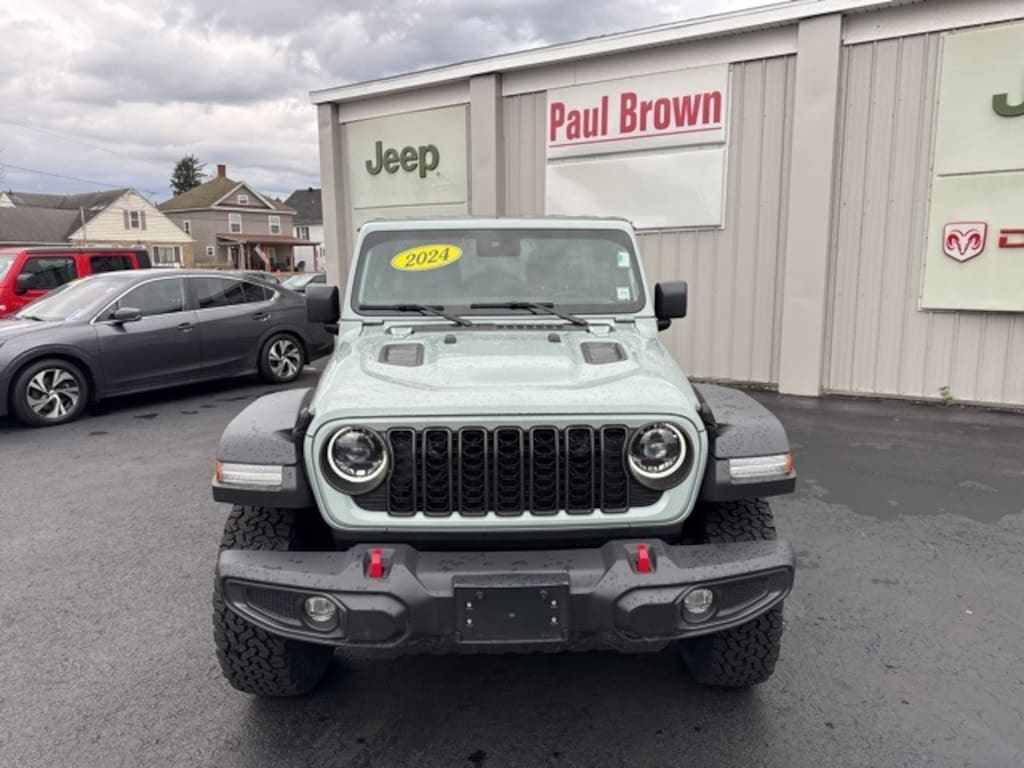 Priced below KBB Fair Purchase Price! CARFAX One-Owner. Clean CARFAX. 2024 Jeep Wrangler Rubicon 4D Sport Utility Earl Clearcoat 3.6L V6 24V VVT 4WD 8-Speed Automatic Earl Clearcoat, 12.3" Touchscreen Display, Apple CarPlay/Android Auto, Cloth Low-Back Bucket Seats, Emergency communication system: Jeep Connect, Front dual zone A/C, Fully automatic headlights, Heated door mirrors, Integrated roll-over protection, Low tire pressure warning, ParkView Rear Back-Up Camera, Performance Suspension, Power door mirrors, Rear Window Defroster, Wheels: 17" x 7.5" Machined/Painted Black. Final Price may require vehicle trade in and Paul Brown trade assistance , see website for details. For a hassle free purchase experience, reach out to the Sales team at Paul Brown Chevy at (716) 244-6077. Conveniently located on Route 16 North, Olean NY 14760. We are worth the trip! Travel from over 75 miles away and don't purchase we will supply you with $25 gas card! Paul Brown Chevy, A Dealer For the People! Our For The People Pricing means ZERO price increases at Paul Brown.