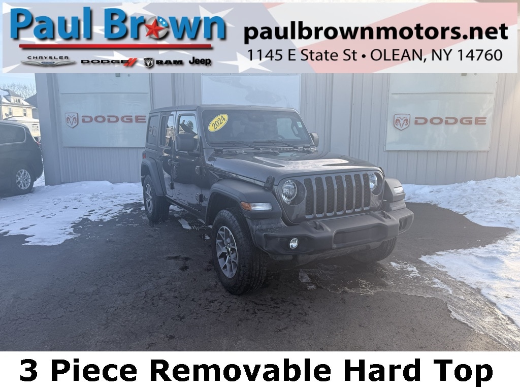 Priced below KBB Fair Purchase Price! CARFAX One-Owner. Clean CARFAX. 2024 Jeep Wrangler Sport S 4D Sport Utility Granite Crystal Metallic Clearcoat Odometer is 12625 miles below market average! 2.0L I4 DOHC 4WD 8-Speed Automatic Balance of new car warranty., Local Trade, Sold and serviced right here at Paul Brown., 2-Door Passive Entry, Front Door Locks, Advanced Brake Assist, Air Conditioning w/Auto Temperature Control, Air Filtering, Apple CarPlay/Android Auto, Automatic Headlamps, Black 3-Piece Hard Top, Cluster 7.0" TFT Color Display, Convenience Group, Corning Gorilla Glass, Deep Tint Sunscreen Windows, Emergency/Assistance Call, Enhanced Adaptive Cruise Control, Freedom Panel Storage Bag, Front 1-Touch Down Power Windows, Front fog lights, Full Speed Forward Collision Warning Plus, Heated Front Seats, Heated Steering Wheel, No Soft Top, ParkView Rear Back-Up Camera, Power Heated Mirrors, Premium Wrapped Steering Wheel, Quick Order Package 22S Sport S, Rear Window Defroster, Rear Window Wiper/Washer, Remote Keyless Entry, Remote Start System, Security Alarm, Speed Sensitive Power Locks, Sport S, Sun Visors w/Illuminated Vanity Mirrors, Universal Garage Door Opener, Wheels: 17" x 7.5" Gray. Final Price may require vehicle trade in and Paul Brown trade assistance, see website for details. For a hassle free purchase experience, reach out to the Sales team at Paul Brown Motors at (585-376-5057). Conveniently located on E State Street, Olean NY 14760. We are worth the trip! Travel from over 75 miles away and don't purchase we will supply you with $25 gas card! Paul Brown Chevy, A Dealer For the People! Our For The People Pricing means ZERO price increases at Paul Brown.