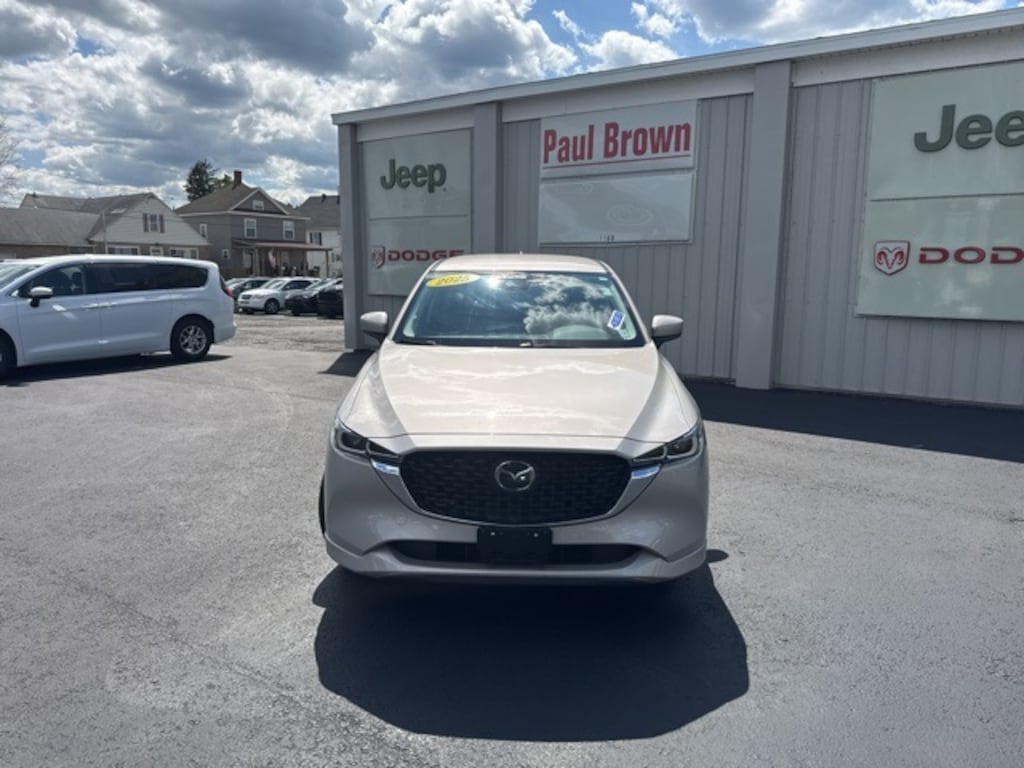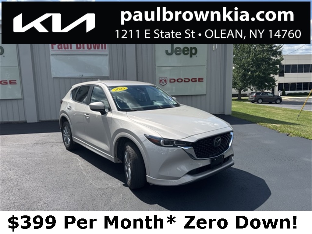 Priced below KBB Fair Purchase Price! CARFAX One-Owner. Clean CARFAX. 2025 Mazda CX-5 2.5 S Select Package 4D Sport Utility Platinum Quartz Metallic SKYACTIV® 2.5L 4-Cylinder DOHC 16V AWD 6-Speed Automatic *$399 per month / Zero cash or trade down / tax not included / 84 months and must qualify for top tier, AppLink/Apple CarPlay and Android Auto, E911 Automatic Emergency Notification, Emergency communication system: MAZDA CONNECT, Front dual zone A/C, Fully automatic headlights, Heated front seats, Leatherette Seat Trim, Low tire pressure warning, Power door mirrors, Power driver seat, Rain sensing wipers, Rear window defroster, Wheels: 17" x 7J Aluminum Alloy. 23/29 City/Highway MPG Final Price may require vehicle trade in and Paul Brown trade assistance , see website for details. For a hassle free purchase experience, reach out to the Sales team at Paul Brown Chevy at (716) 244-6077. Conveniently located on Route 16 North, Olean NY 14760. We are worth the trip! Travel from over 75 miles away and don't purchase we will supply you with $25 gas card! Paul Brown Chevy, A Dealer For the People! Our For The People Pricing means ZERO price increases at Paul Brown.