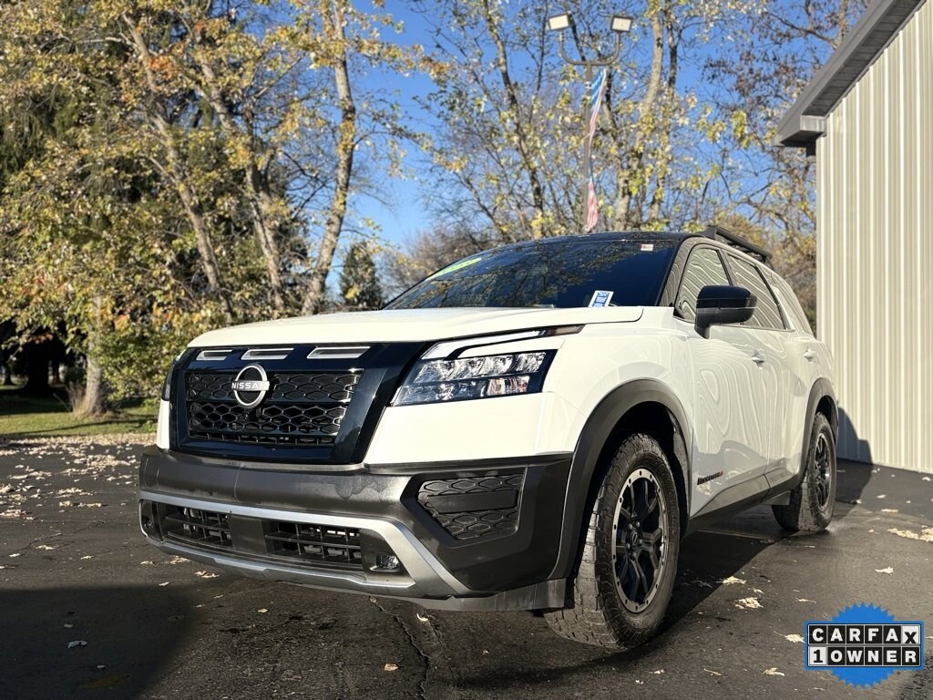 CARFAX One-Owner. Clean CARFAX. 2023 Nissan Pathfinder Rock Creek 4D Sport Utility Pearl White Tricoat/Super Black V6 9-Speed Automatic 4WD Emergency communication system: NissanConnect Services, Front dual zone A/C, Fully automatic headlights, Heated door mirrors, Heated front seats, Leatherette Seating Surfaces, Low tire pressure warning, NissanConnect featuring Apple CarPlay and Android Auto, Power door mirrors, Power driver seat, Rear air conditioning, Rear Parking Sensors, Rear window defroster, Wheels: 18 Beadlock Styled Design. Final Price may require vehicle trade in and Paul Brown trade assistance , see website for details. For a hassle free purchase experience, reach out to the Sales team at Paul Brown Chevy at (716) 244-6077. Conveniently located on Route 16 North, Olean NY 14760. We are worth the trip! Travel from over 75 miles away and don't purchase we will supply you with $25 gas card! Paul Brown Chevy, A Dealer For the People!