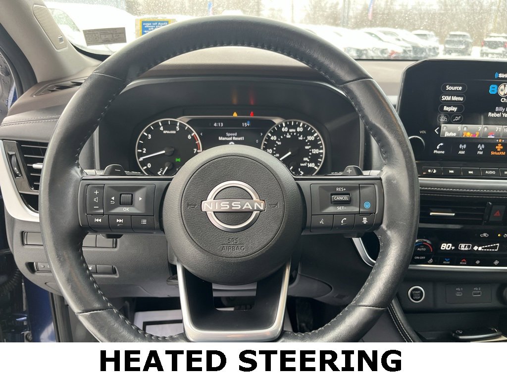 Priced below KBB Fair Purchase Price! CARFAX One-Owner. 2023 Nissan Rogue SL 4D Sport Utility Caspian Blue Metallic 1.5L I3 Turbocharged DOHC 12V LEV3-ULEV50 201hp CVT with Xtronic AWD Odometer is 2318 miles below market average! 19 Aluminum Alloy Wheels, Emergency communication system: NissanConnect Services, Front, Side & Rear Sonar, Fully automatic headlights, Heated door mirrors, Heated front seats, Heated steering wheel, Leather-Appointed Seat Trim, Low tire pressure warning, Motion Activated Power Liftgate, NissanConnect featuring Apple CarPlay and Android Auto, Power door mirrors, Power driver seat, Power Liftgate, Power moonroof, Power passenger seat, ProPILOT Assist w/Navi-link, Radio: AM/FM NissanConnect w/Navigation, Rear Door Sunshades, Rear Parking Sensors, Rear window defroster, SL Premium Package, Traffic Sign Recognition, Tri-Zone HVAC. 28/34 City/Highway MPG Final Price may require vehicle trade in and Paul Brown trade assistance , see website for details. For a hassle free purchase experience, reach out to the Sales team at Paul Brown Chevy at (716) 244-6077. Conveniently located on Route 16 North, Olean NY 14760. We are worth the trip! Travel from over 75 miles away and don't purchase we will supply you with $25 gas card! Paul Brown Chevy, A Dealer For the People!