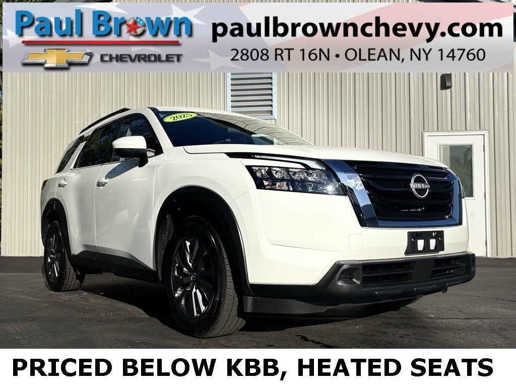Priced below KBB Fair Purchase Price! CARFAX One-Owner. Clean CARFAX. 2025 Nissan Pathfinder SV 4D Sport Utility Glacier White 3.5L V6 DOHC 9-Speed Automatic 4WD Odometer is 5534 miles below market average! Auto High-beam Headlights, Front dual zone A/C, Fully automatic headlights, Heated door mirrors, Heated front seats, Low tire pressure warning, NissanConnect featuring Apple CarPlay and Android Auto, Power door mirrors, Power driver seat, Power Liftgate, Rear air conditioning, Rear Parking Sensors, Rear window defroster, Wheels: 18 x 8J Painted Alloy. 21/27 City/Highway MPG Final Price may require vehicle trade in and Paul Brown trade assistance , see website for details. For a hassle free purchase experience, reach out to the Sales team at Paul Brown Chevy at (716) 244-6077. Conveniently located on Route 16 North, Olean NY 14760. We are worth the trip! Travel from over 75 miles away and don't purchase we will supply you with $25 gas card! Paul Brown Chevy, A Dealer For the People!