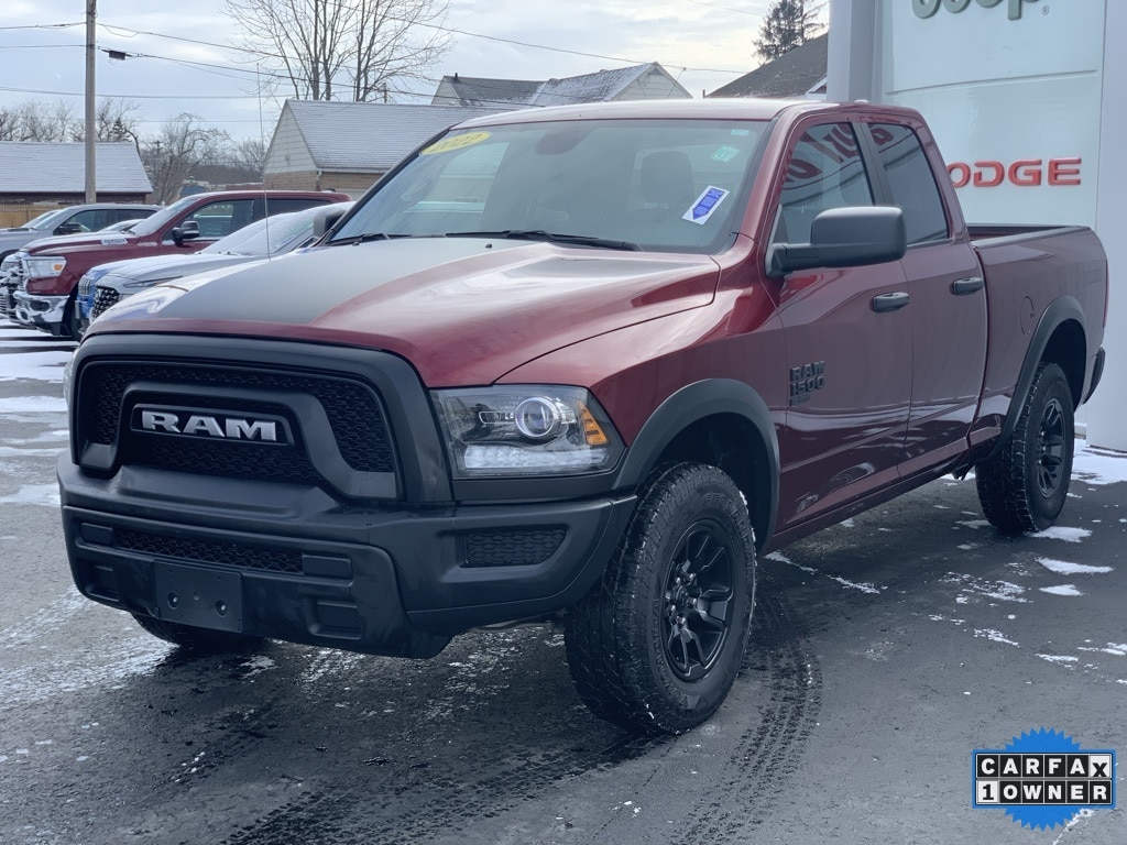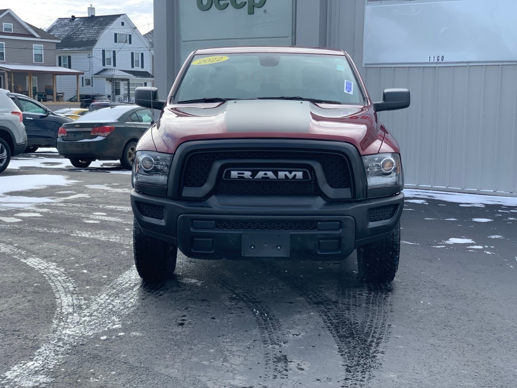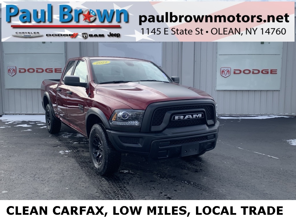 CARFAX One-Owner. Clean CARFAX. 2022 Ram 1500 Classic Warlock 4D Quad Cab Delmonico Red Pearlcoat Odometer is 10587 miles below market average! 3.6L V6 24V VVT 4WD 8-Speed Automatic Balance of new car warranty., Local Trade, Sold and serviced right here at Paul Brown., 4x4 Flat Black Badge, Air Conditioning, Black Exterior Truck Badging, Black Grille w/RAM Lettering, Black Headlamp Filler Panel, Black Powder Coated Front Bumper, Black Powder Coated Rear Bumper, Black RAM Head Tailgate Badge, Black Wheel Flares, Cloth 40/20/40 Bench Seat, Front Wheel Well Liners, Heated door mirrors, Low tire pressure warning, MOPAR Front & Rear Rubber Floor Mats, ParkSense Rear Park Assist System, ParkView Rear Back-Up Camera, Power door mirrors, Power windows, Quick Order Package 29F Warlock, Raised Ride Height, Rear Extra HD Shock Absorbers, Remote keyless entry, Remote USB Port, Speed control, Sport Tail Lamps, Warlock, Warlock All Terrain Package, Warlock Interior Accents, Wheels: 20" x 9" Semi-Gloss Black Aluminum. Final Price may require vehicle trade in and Paul Brown trade assistance, see website for details. For a hassle free purchase experience, reach out to the Sales team at Paul Brown Motors at (585-376-5057). Conveniently located on E State Street, Olean NY 14760. We are worth the trip! Travel from over 75 miles away and don't purchase we will supply you with $25 gas card! Paul Brown Chevy, A Dealer For the People! Our For The People Pricing means ZERO price increases at Paul Brown.