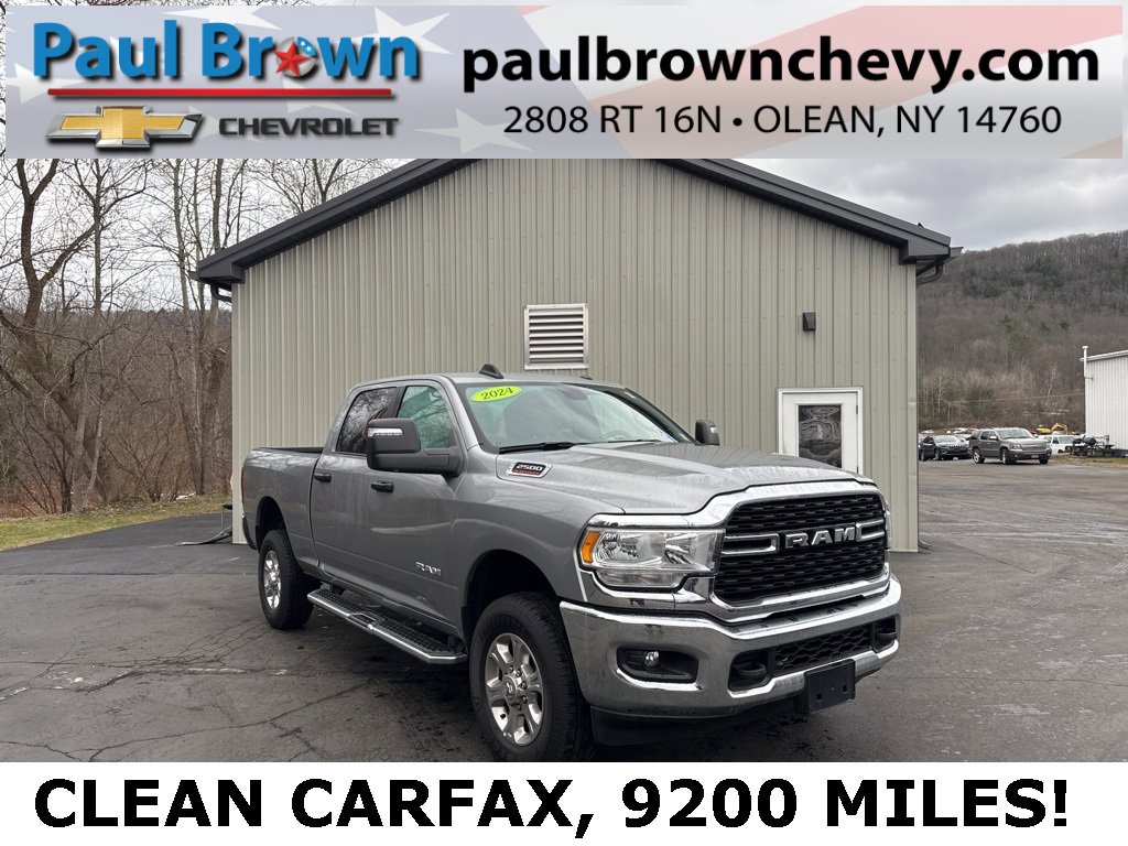 Priced below KBB Fair Purchase Price! CARFAX One-Owner. Clean CARFAX. 2024 Ram 2500 Big Horn 4D Crew Cab Billet Silver Metallic Clearcoat 6.4L V8 8-Speed Automatic 4WD Odometer is 9575 miles below market average! 2nd Row In Floor Storage Bins, 4G LTE Wi-Fi Hot Spot, Air Conditioning, Apple CarPlay, Bed Utility Group, Emergency communication system: SiriusXM Guardian, Forward & Reverse Utility Lights, Google Android Auto, Heated door mirrors, LED Bed Lighting, Low tire pressure warning, MOPAR Deployable Bed Step, MOPAR Spray In Bedliner, Power 2-Way Driver Lumbar Adjust, Power Adjust 8-Way Driver Seat, Power door mirrors, Remote keyless entry, SiriusXM Satellite Radio. Final Price may require vehicle trade in and Paul Brown trade assistance , see website for details. For a hassle free purchase experience, reach out to the Sales team at Paul Brown Chevy at (716) 244-6077. Conveniently located on Route 16 North, Olean NY 14760. We are worth the trip! Travel from over 75 miles away and don't purchase we will supply you with $25 gas card! Paul Brown Chevy, A Dealer For the People!