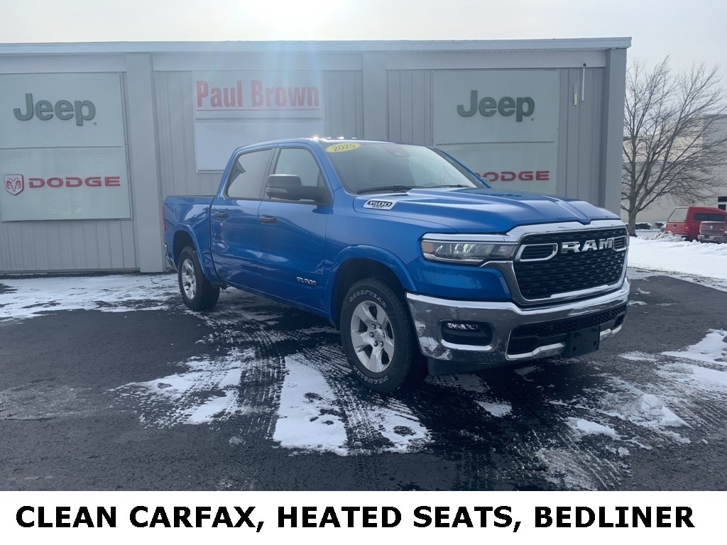 Priced below KBB Fair Purchase Price! CARFAX One-Owner. Clean CARFAX. 2025 Ram 1500 Big Horn/Lone Star 4D Crew Cab Hydro Blue Pearlcoat 3.0L I6 4WD 8-Speed Automatic Balance of new car warranty., 115V Auxiliary Power Outlet, 115V Auxiliary Rear Power Outlet, 12" Touchscreen Display, 2nd Row In Floor Storage Bins, 4G LTE Wi-Fi Hot Spot, 9 Amplified Speakers w/Subwoofer, Air Conditioning ATC w/Dual Zone Control, Apple CarPlay/Android Auto, Auto-Dimming Rear-View Mirror, Big Horn Level 2 Equipment Group, Cloth Bench Seat, Cluster 7.0" TFT Color Display, Configurable Drive Mode, Connected Travel & Traffic Services, Front fog lights, GPS Navigation, Heated door mirrors, Heated Front Seats, Heated Steering Wheel, Integrated Voice Command w/Bluetooth, Leather Wrapped Steering Wheel, LED Dome Lamp w/On/Off Switch, Low tire pressure warning, Media Hub w/2 Charge Only USBs, Overhead LED Lamps, ParkView Rear Back-Up Camera, Power 2-Way Driver Lumbar Adjust, Power Adjust 8-Way Driver Seat, Power Adjustable Pedals, Power door mirrors, Power windows, Radio: Uconnect 5 Nav w/12.0" Display, Rear Power Sliding Window, Rear Window Defroster, Remote keyless entry, Remote Tailgate Release, SiriusXM w/360L, Sun Visors w/Illuminated Vanity Mirrors, Traction control, Universal Garage Door Opener, USB Host Flip, Wheels: 18" x 8" Cast-Aluminum Painted. Final Price may require vehicle trade in and Paul Brown trade assistance, see website for details. For a hassle free purchase experience, reach out to the Sales team at Paul Brown Chevy at (716) 244-6077. Conveniently located on Route 16 North, Olean NY 14760. We are worth the trip! Travel from over 75 miles away and don't purchase we will supply you with $25 gas card! Paul Brown Chevy, A Dealer For the People! Our For The People Pricing means ZERO price increases at Paul Brown.