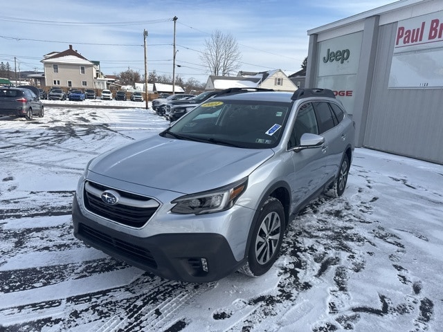 Priced below KBB Fair Purchase Price! Clean CARFAX. 2021 Subaru Outback Premium 4D Sport Utility Ice Silver Metallic Odometer is 27304 miles below market average! 2.5L 4-Cylinder DOHC 16V AWD CVT Lineartronic Cloth Upholstery, Emergency communication system: STARLINK Safety and Security (Subscription Required), Exterior Parking Camera Rear, Front dual zone A/C, Front fog lights, Fully automatic headlights, Heated door mirrors, Heated front seats, Low tire pressure warning, Power driver seat, Power windows, Radio: Subaru STARLINK 11.6" Multimedia Plus Sys, Rear window defroster, Remote keyless entry, Roof rack, Speed control, STARLINK/Apple CarPlay/Android Auto, Tilt steering wheel, Traction control, Wheels: 17" x 7J Black Aluminum Alloy. 26/33 City/Highway MPG Final Price may require vehicle trade in and Paul Brown trade assistance, see website for details. For a hassle free purchase experience, reach out to the Sales team at Paul Brown Chevy at (716) 244-6077. Conveniently located on Route 16 North, Olean NY 14760. We are worth the trip! Travel from over 75 miles away and don't purchase we will supply you with $25 gas card! Paul Brown Chevy, A Dealer For the People! Our For The People Pricing means ZERO price increases at Paul Brown.