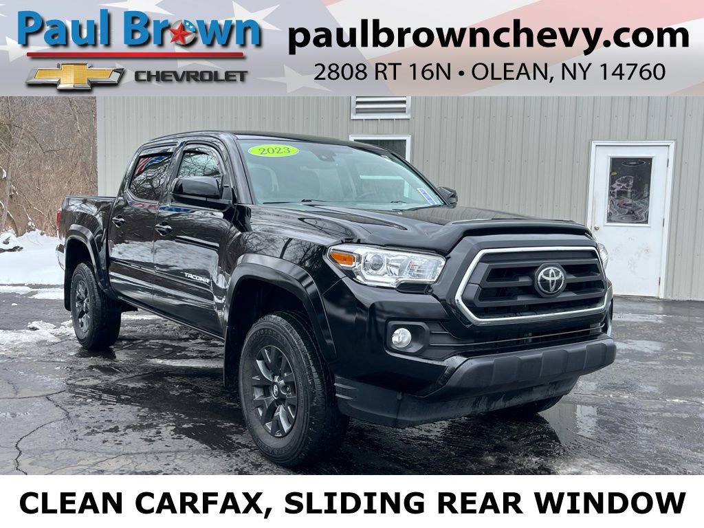 Priced below KBB Fair Purchase Price! CARFAX One-Owner. Clean CARFAX. 2023 Toyota Tacoma SR5 V6 4D Double Cab Black 3.5L V6 6-Speed 4WD Odometer is 12460 miles below market average! ABS brakes, Active Cruise Control, Apple CarPlay/Android Auto, Automatic temperature control, Electronic Stability Control, Emergency communication system: Safety Connect (1-year trial), Exterior Parking Camera Rear, Fabric Seat Trim, Front dual zone A/C, Heated door mirrors, Illuminated entry, Low tire pressure warning, Power door mirrors, Power driver seat, Power Sliding Rear Window w/Privacy Glass, Remote keyless entry, Traction control. Final Price may require vehicle trade in and Paul Brown trade assistance , see website for details. For a hassle free purchase experience, reach out to the Sales team at Paul Brown Chevy at (716) 244-6077. Conveniently located on Route 16 North, Olean NY 14760. We are worth the trip! Travel from over 75 miles away and don't purchase we will supply you with $25 gas card! Paul Brown Chevy, A Dealer For the People!