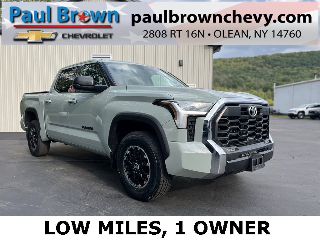 CARFAX One-Owner. 2023 Toyota Tundra SR5 4D CrewMax Lunar Rock 3.4L V6 10-Speed Automatic 4WD Odometer is 5500 miles below market average! 18 Alloy Wheels, Air Conditioning, Apple CarPlay/Android Auto, Automatic temperature control, Emergency communication system: Safety Connect (10-year trial), Exterior Parking Camera Rear, Fabric Seat Trim (FB), Fully automatic headlights, Heated door mirrors, Low tire pressure warning, Power door mirrors, Rear window defroster. Final Price may require vehicle trade in and Paul Brown trade assistance , see website for details. For a hassle free purchase experience, reach out to the Sales team at Paul Brown Chevy at (716) 244-6077. Conveniently located on Route 16 North, Olean NY 14760. We are worth the trip! Travel from over 75 miles away and don't purchase we will supply you with $25 gas card! Paul Brown Chevy, A Dealer For the People!