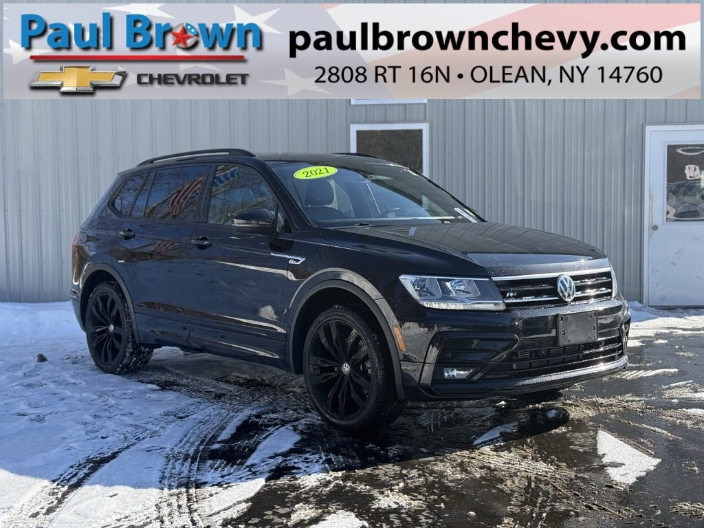 Priced below KBB Fair Purchase Price! CARFAX One-Owner. Clean CARFAX. 2021 Volkswagen Tiguan 2.0T SE 4D Sport Utility Deep Black Pearl 2.0L TSI DOHC 8-Speed Automatic with Tiptronic AWD Odometer is 14837 miles below market average! Active Cruise Control, Electronic Stability Control, Exterior Parking Camera Rear, Forward collision: FCW w/Autonomous Emergency Braking mitigation, Front dual zone A/C, Fully automatic headlights, Heated door mirrors, Heated Front Comfort Seats, Illuminated entry, Low tire pressure warning, Perforated V-Tex Leatherette Seating Surfaces, Power door mirrors, Power driver seat, Power windows, Rear window defroster, Remote keyless entry, Traction control, Wheels: 17 2-Tone Machined & Black Alloy. 21/27 City/Highway MPG Final Price may require vehicle trade in and Paul Brown trade assistance , see website for details. For a hassle free purchase experience, reach out to the Sales team at Paul Brown Chevy at (716) 244-6077. Conveniently located on Route 16 North, Olean NY 14760. We are worth the trip! Travel from over 75 miles away and don't purchase we will supply you with $25 gas card! Paul Brown Chevy, A Dealer For the People!