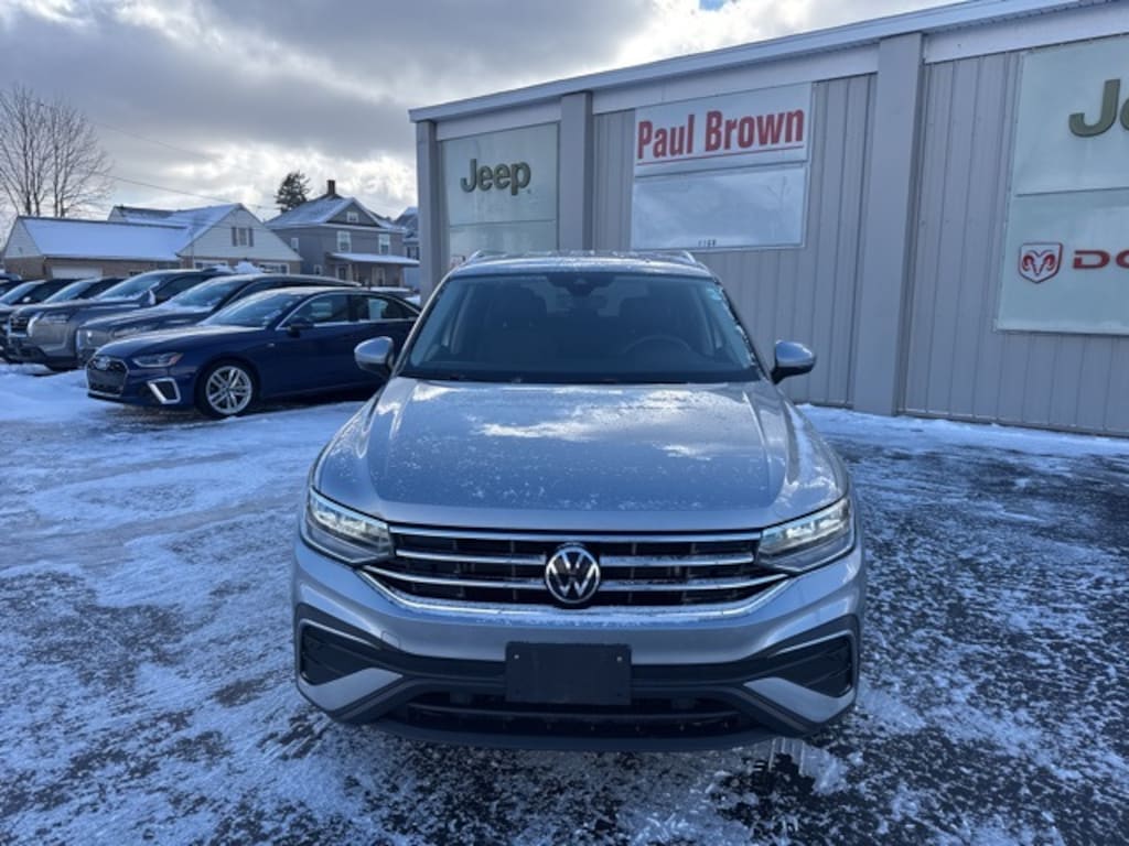 Priced below KBB Fair Purchase Price! CARFAX One-Owner. Clean CARFAX. 2022 Volkswagen Tiguan 2.0T SE 4D Sport Utility Platinum Gray Metallic Odometer is 1321 miles below market average! 2.0L TSI DOHC AWD 8-Speed Automatic with Tiptronic Emergency communication system: Car-Net, Front dual zone A/C, Fully automatic headlights, Heated door mirrors, Heated front seats, Low tire pressure warning, Perforated V-Tex Leatherette Seating Surfaces, Power door mirrors, Power driver seat, Power Liftgate, Rain sensing wipers, Rear window defroster, Wheels: 18" Dark Graphite 10-Spoke Alloy. 22/29 City/Highway MPG Final Price may require vehicle trade in and Paul Brown trade assistance, see website for details. For a hassle free purchase experience, reach out to the Sales team at Paul Brown Chevy at (716) 244-6077. Conveniently located on Route 16 North, Olean NY 14760. We are worth the trip! Travel from over 75 miles away and don't purchase we will supply you with $25 gas card! Paul Brown Chevy, A Dealer For the People! Our For The People Pricing means ZERO price increases at Paul Brown.