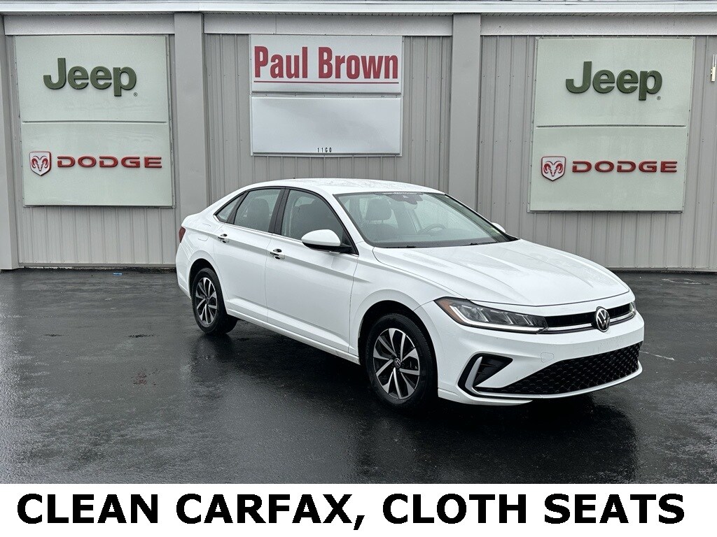 Priced below KBB Fair Purchase Price! Clean CARFAX. 2025 Volkswagen Jetta 1.5T S 4D Sedan Pure White Odometer is 1791 miles below market average! 1.5L I-4 DI DOHC Turbocharged FWD 8-Speed Automatic with Tiptronic Balance of new car warranty., Alloy wheels, Automatic temperature control, Cloth Seat Trim, Emergency communication system: VW Car-Net Safe & Secure 5-year, Exterior Parking Camera Rear, Front dual zone A/C, Low tire pressure warning, Power windows, Remote keyless entry, Speed control, Telescoping steering wheel, Tilt steering wheel. 29/39 City/Highway MPG Final Price may require vehicle trade in and Paul Brown trade assistance, see website for details. For a hassle free purchase experience, reach out to the Sales team at Paul Brown Motors at (585-376-5057). Conveniently located on E State Street, Olean NY 14760. We are worth the trip! Travel from over 75 miles away and don't purchase we will supply you with $25 gas card! Paul Brown Chevy, A Dealer For the People! Our For The People Pricing means ZERO price increases at Paul Brown.